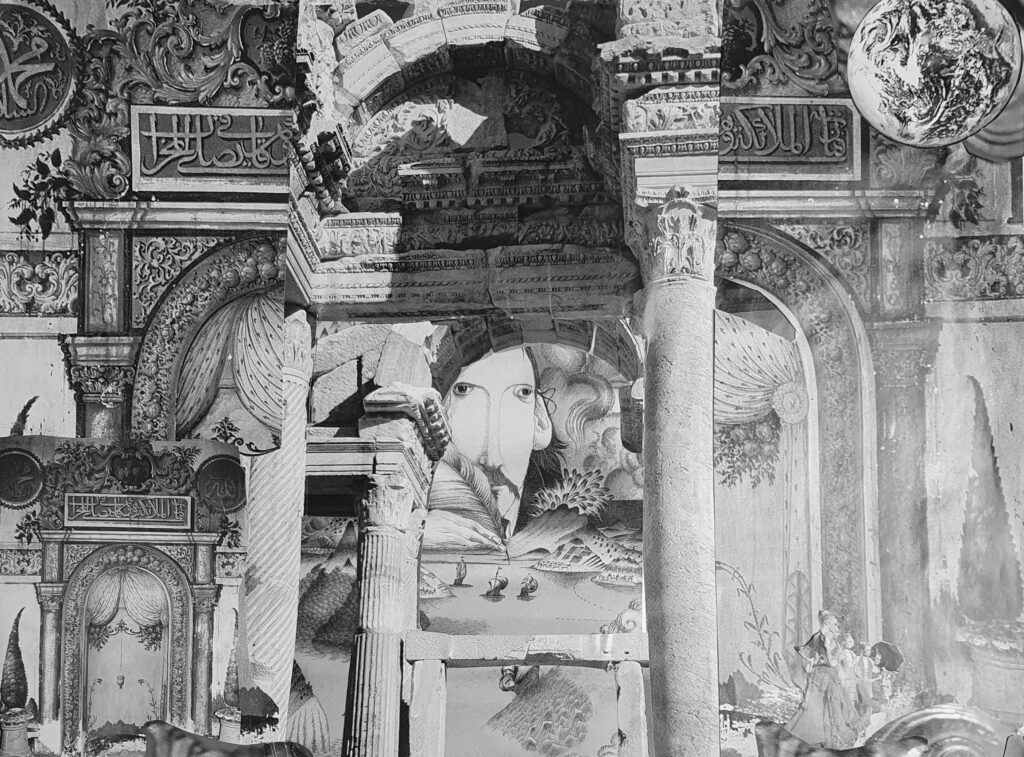 Collage von Silke Saracoglu: Ein Gesicht blickt wie durch ein Schlüsselloch, umgeben von ornamentalen Mustern – Symbol für innere Betrachtung und persönliche Entwicklung im Einzelcoaching.